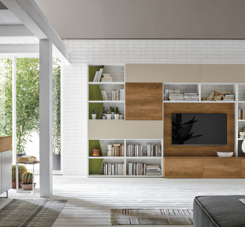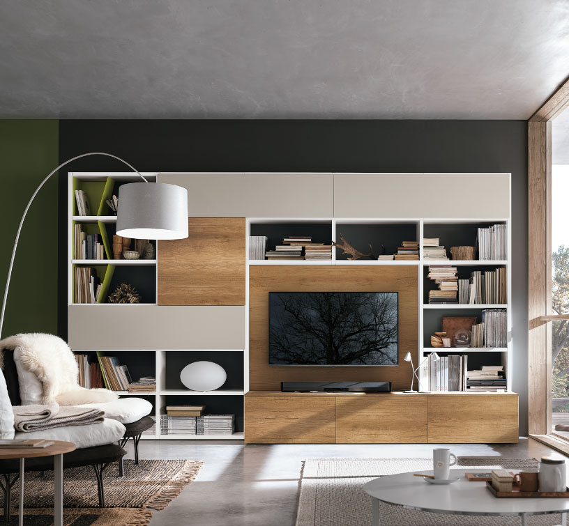 Ideali per ottimizzare lo spazio e ospitare TV, libri e oggetti decorativi, le nostre pareti attrezzate offrono configurazioni personalizzabili per adattarsi a ogni esigenza.